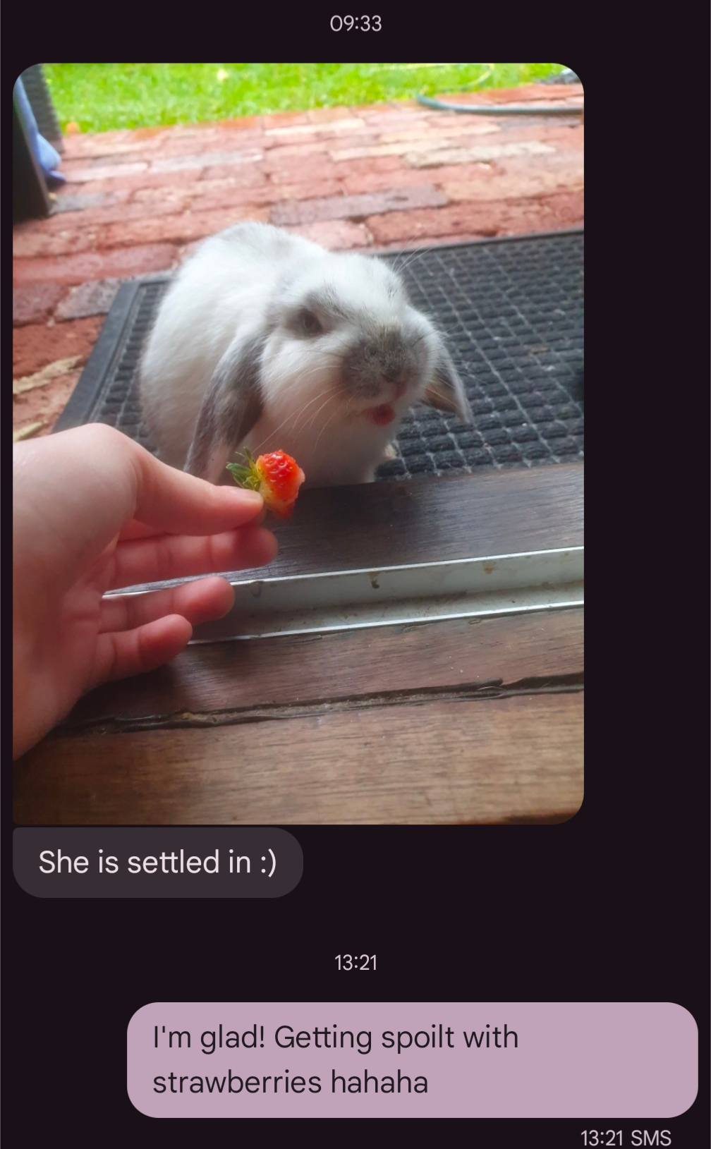 I learnt quickly about how to care for rabbit kits and managed to rehome all of them except for one; a girl to keep Mum company.