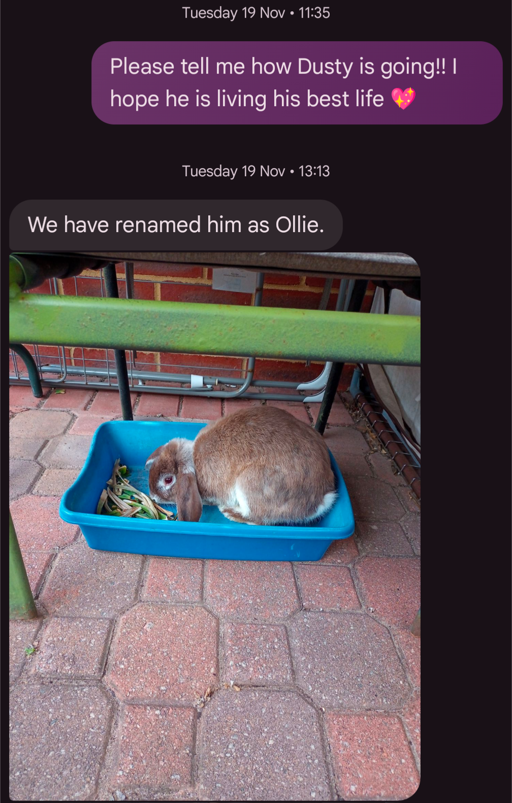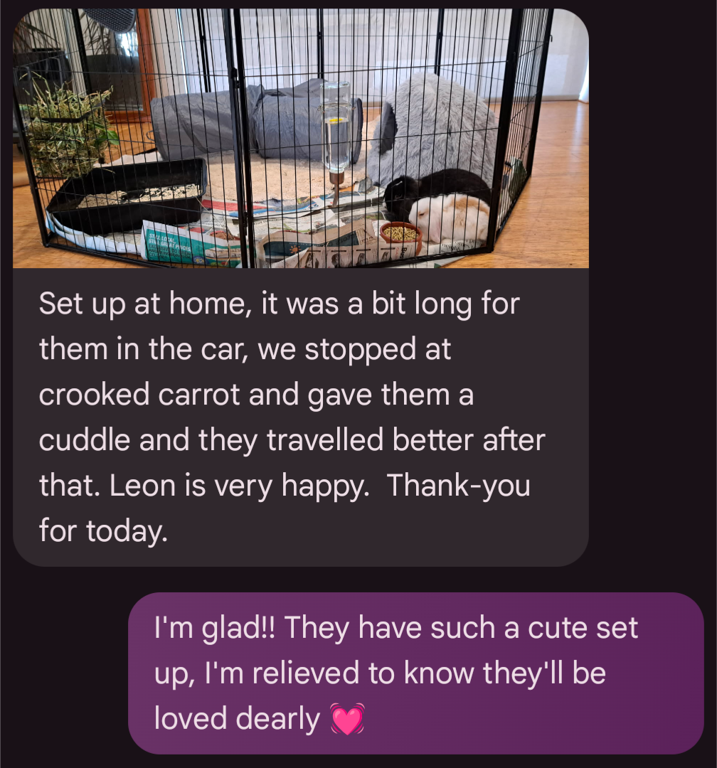 Before you send them to a shelter or rescue, PLEASE contact us! We specialise in caring for rabbits. A lot of typical veterinarians do not understand a rabbit's diet nor their care requirements. We will be happy to take them in and find them a suitable home, no charge to you.